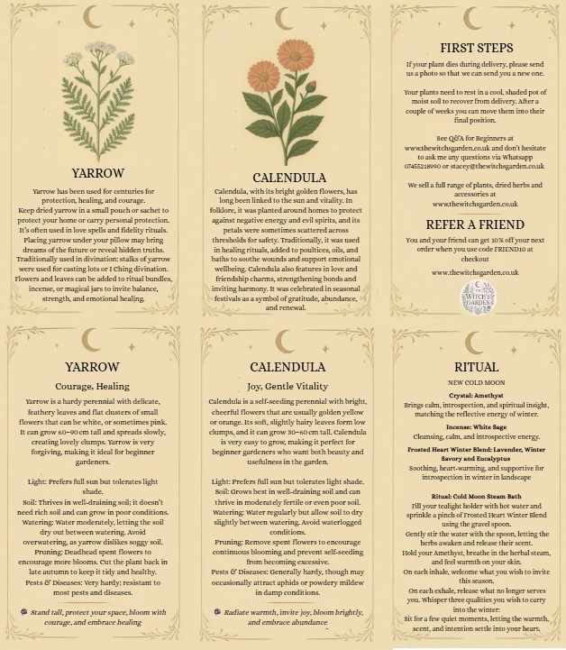 🌿 2 Live Plants - Grown with love in our ancient woodland or garden, selected for their seasonal energy, herbal lore, or moon-aligned magic. Expect unusual herbs, flowers, or native plants, ready for potting. All are easy to care for and perennial which means they will thrive for years.