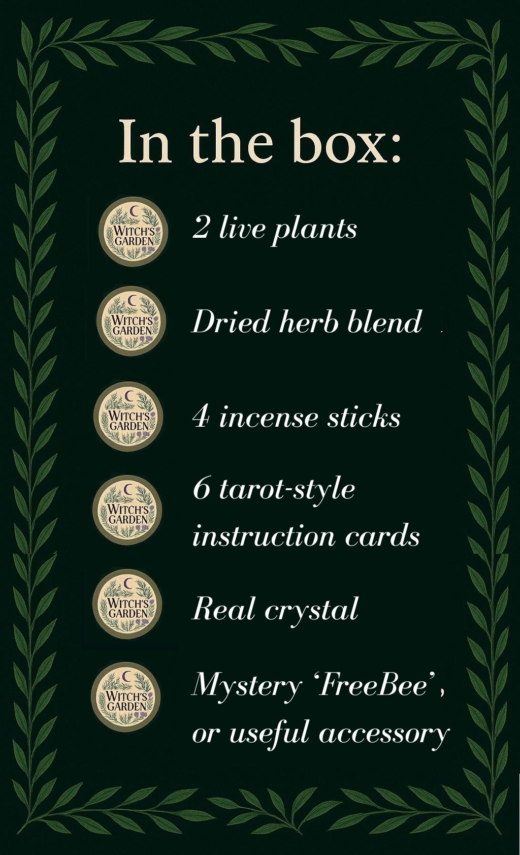 “This box isn’t about doing more. It’s about doing less- with meaning. Each item is chosen to help you reconnect with the land, the seasons, and your own quiet wisdom” - Stacey, founder of The Witch’s Garden